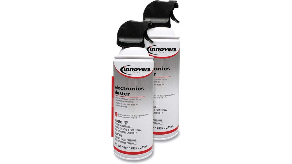 You want a reliable duster that delivers targeted bursts for keys and crevices, so pick based on use: grab a portable 3.5 oz iDuster for on-the-go touch-ups, a 10 oz straw-equipped can (Innovera, Staples, or Dust-Off) for precise home/office work, or a rechargeable blower (FRESMOL/WOLFBOX) for frequent, eco-friendly cleaning. Watch for moisture-free, ozone-safe formulas and bitterants; follow safety instructions to avoid cold burns. Keep going and you’ll find detailed comparisons, runtimes, and pros versus cons.