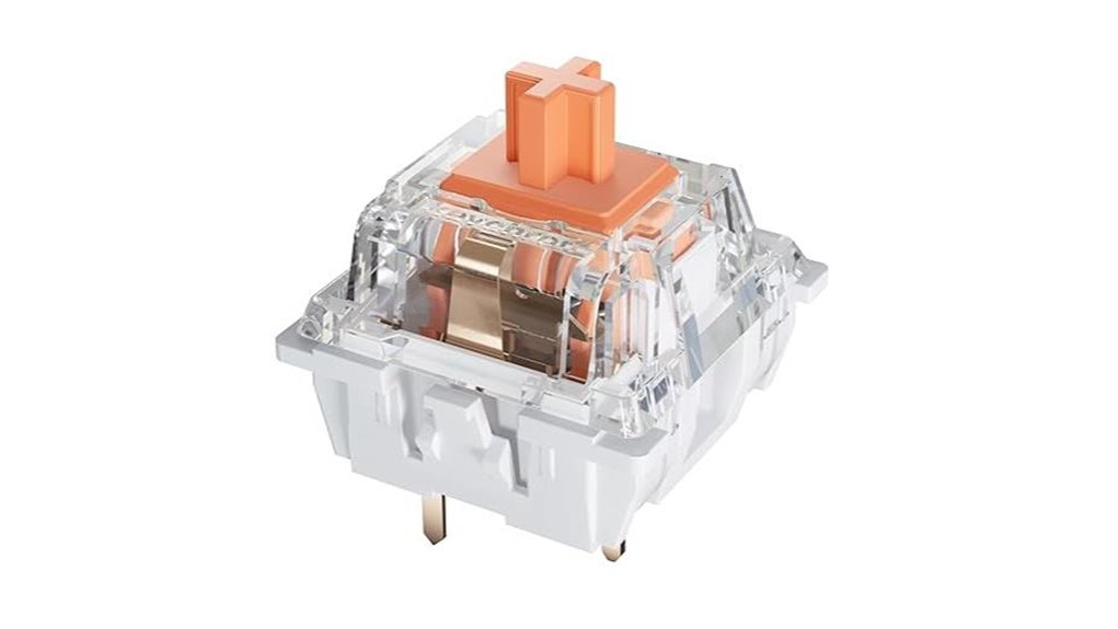 Considering housing materials will shape both the feel and the noise of your switches, so focus on construction as much as spring weight. Choose polycarbonate or nylon tops if you want vivid RGB and a slightly firmer sound, while rigid bottom housings paired with POM or nylon stems cut friction and wobble for smoother travel and cleaner acoustics. Look for tighter-tolerance, high-precision housings to minimize stem wobble and off-axis noise—this yields more consistent, quieter keystrokes in shared spaces. If bottom-out or upstroke thumps bother you, prefer housings with integrated elastomer or silicone dampening pads or add dedicated silencing inserts to reduce impact without altering actuation force. Dual-material or multi-part housings can combine rigidity with internal sound-absorbing layers to lower perceived loudness while keeping longevity.