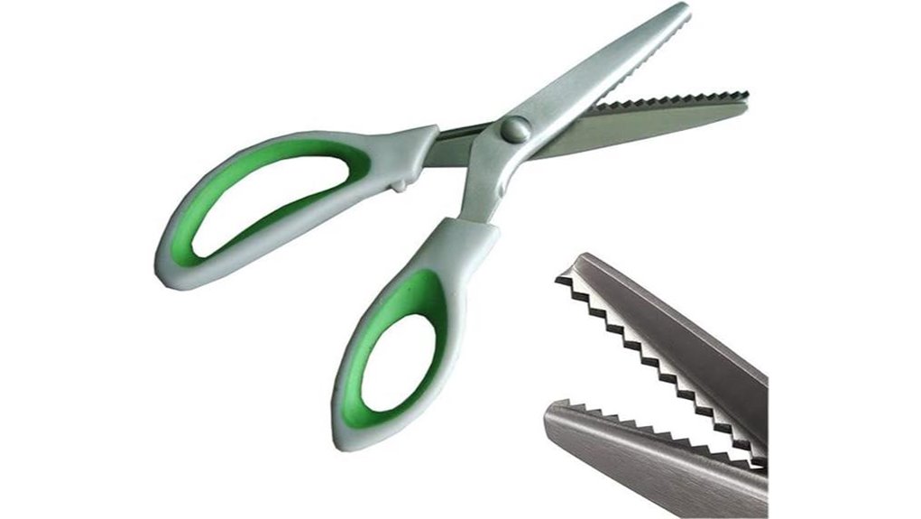 You’ll want pinking shears with hardened stainless blades, a 5 mm zigzag or 7 mm scallop, and comfortable ambidextrous handles so cuts stay neat and fatigue stays low. Fiskars RazorEdge and Gingher 7.5″ are top picks for clean, fray-resistant edges; LIVINGO and SINGER offer heavy-duty, ergonomic options for frequent use. Watch blade length and layer limits—avoid too many layers or delicate knits—and keep blades lightly oiled for long life if you want more specifics.