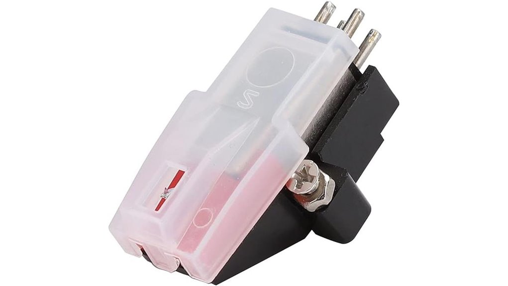 While upgrading a vintage turntable, you’ll want to prioritize materials and build quality because they determine how long a cartridge will perform and how well it protects your records. Choose moving-magnet (MM) designs when you need mechanical durability; they typically outlast piezoelectric types under normal use. Prefer diamond or sapphire-tipped styli—elliptical or spherical—for far greater wear resistance, yielding hundreds to thousands of playback hours with proper care. Look for metal or high-grade ABS bodies to reduce resonance and resist impact and oxidation compared with cheap plastics. Check for gold or other corrosion-resistant plating on contacts and cantilevers to preserve electrical connectivity in humid or polluted environments. Replace worn styli regularly and store spares in protective cases to extend cartridge life and safeguard vinyl.